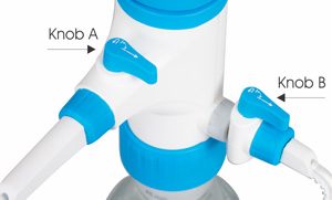In this mode the liquid is re-circulated into the same bottle on which the dispenser in mounted. This process removes the air from the dispenser without wasting any reagent.
