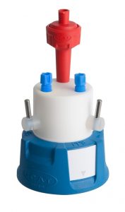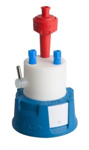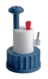 Safety Cap II, for ground neck bottles 29/32 mm, with locknut, 2x PFA-fittings 3,2 mm OD + air valve