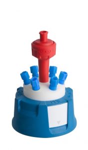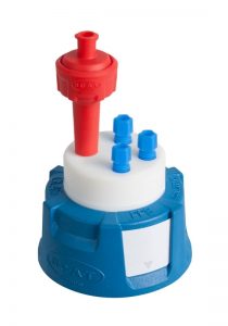 Safety Cap IV, V2.0, GL45 with 4x shut-off, 4x PFA-fittings 3,2 mm OD + air valve