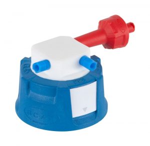 Safety Cap II, V2.0, GL45, with shut-off (combined), 2x PFA-fitting 3,2 mm OD + air valve